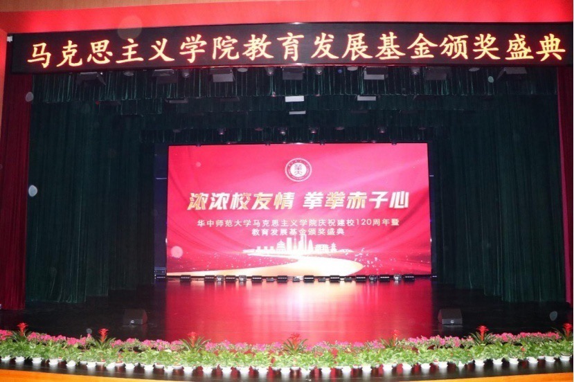 正值金秋逢百廿,飘香丹桂满情意。10月1日,欢度国庆之时,华中师范大学马克思主义学院庆祝建校120周年暨教育发展基金颁奖盛典举办。该院各届校友、师生代表齐聚学生活动中心大礼堂参加。借助线上直播的形式,未能到场的校友和师生也能参与其中,见证这场盛会。此次颁奖盛典以“感恩、传承、攀登、信仰”为主题,九大项目教育发展基金集中颁授,61名师生分享近70万元校友捐赠奖励基金,表彰在学术研究、教育教学、理论宣传、社会服务和管理等各方面表现突出的师生,以激励学生成长,助力教师人才队伍建设。
