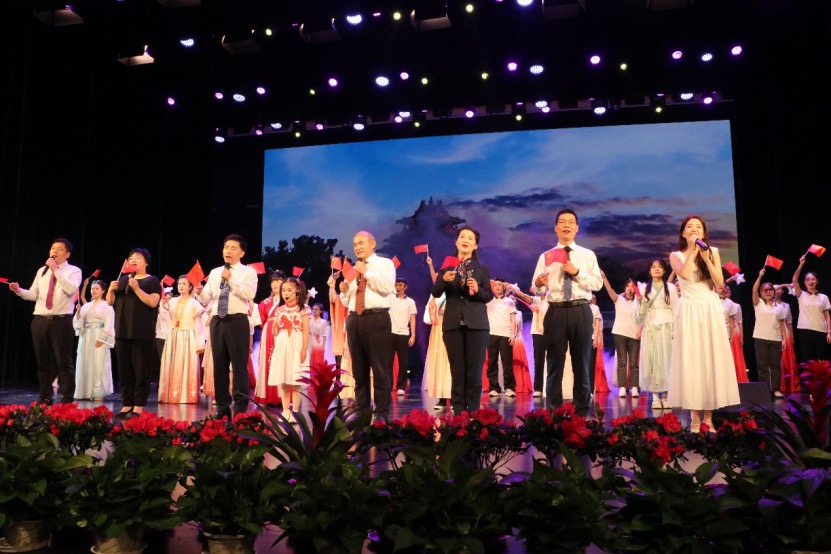 颁奖盛典现场气氛热烈。在校大学生樊德超等26名同学带来了气氛热烈的《龙腾盛世》舞龙表演,张致源等同学带来小合唱《祖国不会忘记》,李芳等16名女教师带来了服装秀《盛世霓裳》,孙永祥、万美容等学院等领导班子带来了歌舞《带着一片音符向未来》,展演引人入胜,奖项颁发庄重感人,故事讲述动人心弦,现场观众以热烈的掌声表达对获奖者的敬意和祝贺,以不断的欢呼声表达对此次盛典节目的喜爱之情。(徐艳艳 马碟 杜俏颐 余扬扬)