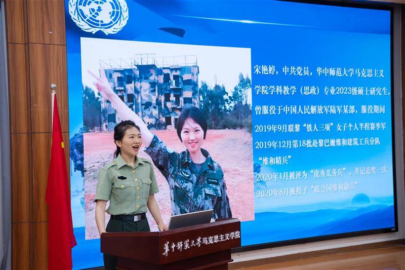 湖北日报讯(记者韩晓玲、通讯员田聪娇、刘伟俊)“戴上蓝盔,更知和平的分量。我有幸把最美的青春绽放在维和战场上。”6月14日,在华中师范大学举行的“强军有我,青春华师”宣讲会上,曾赴黎巴嫩维和的退役女兵宋艳婷为师生讲述了自己的从军经历和感悟。