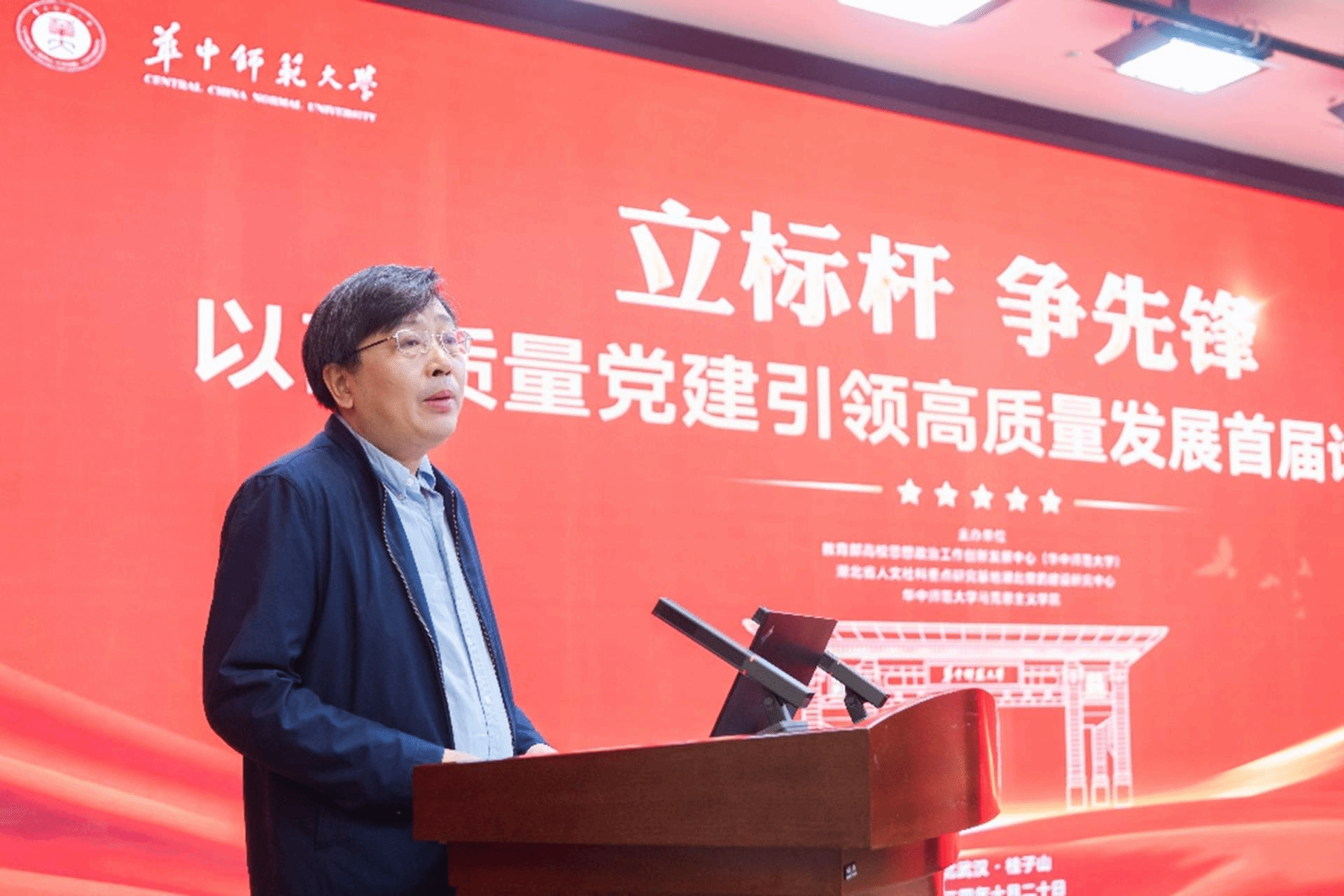 10月20日,“立标杆 争先锋 以高质量党建引领高质量发展首届论坛”在华中师范大学隆重举行。来自全国40余所高校、企业、行业组织的近百名党建研究专家、师生代表汇聚一堂,就“以高质量党建引领高质量发展”这一主题进行了深入交流与研讨。