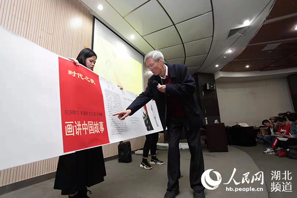 10月25日,80岁高龄的湖北省著名油画家刘三多老先生走上讲台,为该校美术学院大一新生主讲了一堂“绘就出精彩人生——我的创作之路”的思政课。伴随着现场一幅幅画卷的展开,刘三多老先生自身作画的经历生动地展现在同学们的眼前。刘老先生用几十年作画的行动向学生们诠释了“为谁作画”的问题。他一生画作的主题无一不是讴歌党和祖国、讴歌人民和英雄、讴歌美丽中国,他号召同学们用画来讲好中国故事,深深感染了在场的学子们。