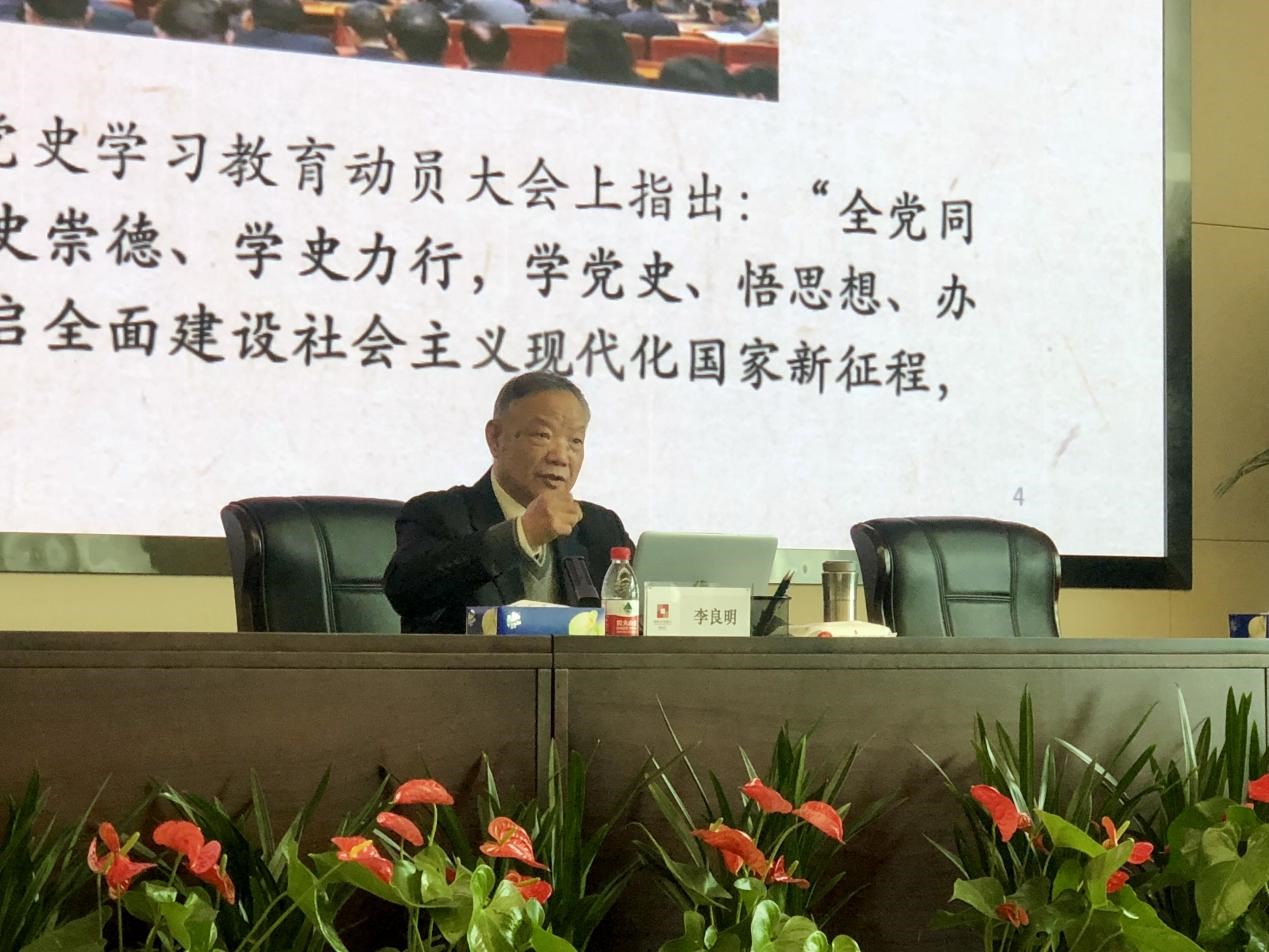 在会上,湖北省委党史宣讲团成员、华中师范大学马克思主义学院教授李良明以“中国共产党百年辉煌历史和基本经验”为主题作宣讲报告。他回顾了百年来我们党团结带领人民走过的光辉历程,用“开天辟地”、“改天换地”、“翻天覆地”和“惊天动地”四个阶段概括了我们党所取得的辉煌成就,总结了我们党百年历程的基本经验。参加报告会的党员称赞李教授用深厚的理论功底、详实的党史资料、感染力极强的表达,上了一堂既有思想理论性又有正确政治性的党课,深受教育,表示将把学党史、悟思想、办实事、开新局统一起来,充分发挥金融机构的服务作用,促进社会经济发展,以优异成绩迎接建党100周年。