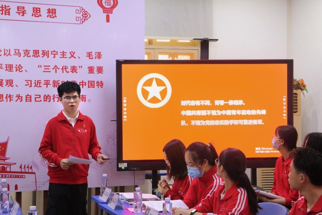 会议伊始,由恽代英班成员邹哲浩带领参会人员集体学习习近平总书记在庆祝中国共青团成立100周年大会上的重要讲话精神。邹哲浩从“共青团取得的历史成就和宝贵经验”“对共青团工作的要求”“对当代青年的期望”三个方面展开,总结概括了大会的讲话精神。在“共青团取得的历史成就和宝贵经验”方面,他带领同学们回顾了中国共青团在不同历史时期的奋斗发展历程。在“对共青团工作的要求”方面,他认为,在新时代背景下,中国共青团要牢记习近平总书记讲话中的“四点希望”,要增强引领力、组织力、服务力,团结带领广大团员青年成长为有理想、敢担当、能吃苦、肯奋斗的新时代好青年。在“对当代青年的期望”方面,他提出青年应当铸牢对党忠诚的政治品格,高扬理想主义的精神气质,自觉践行群众路线,树牢群众观点,培养担当实干的工作作风,涵养廉洁自律的道德修为。