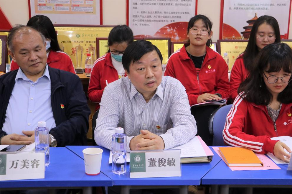 最后,董俊敏总结讲话。他谈到,作为曾经的团员、团干,对习近平总书记的讲话感到很亲切,而此次主题班会通过学习习近平总书记的重要讲话精神使同学们更加明确自身担当,丰富成长实践,效果显著。他指出,恽代英班是一个先进的集体,坚守红色信念,传播红色文化,对各种时事热点能做到先学一步、学深一步;同时是一个战斗的集体,同学们能够积极参加学校的各种活动并主动作为;还是一个成才的集体,同学们不仅能学好专业课程、承办各种活动,而且通过研究、实践活动使优秀的我们更加优秀,起到了很好的示范、引领作用。