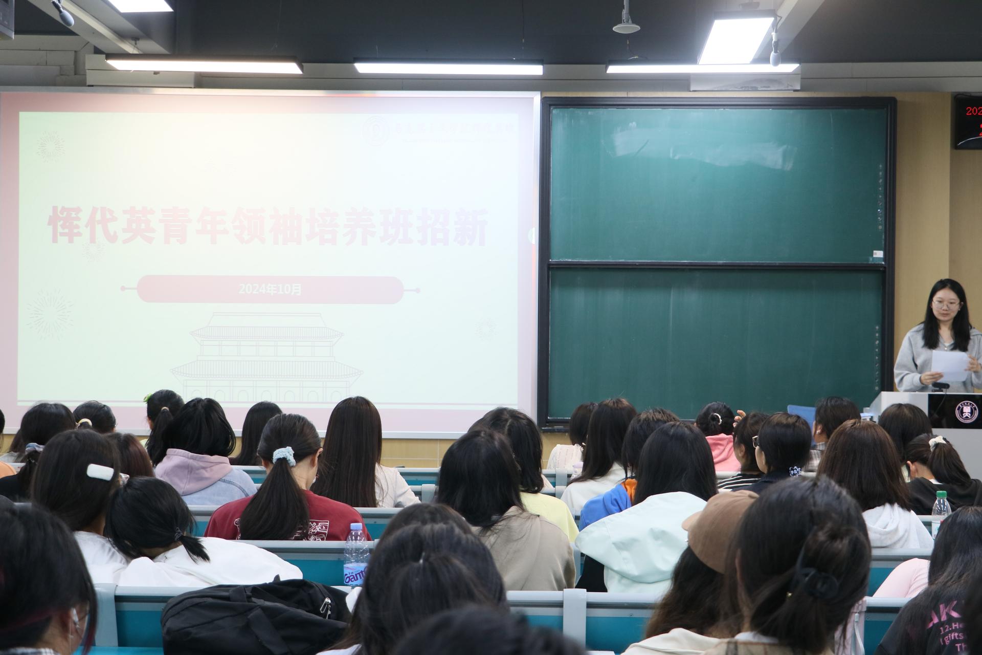 马克思主义学院讯(通讯员 李黄帆;摄影 李黄帆)为更好传承和弘扬杰出校友恽代英伟大的革命精神,培养一批理想信念坚定、理论素养深厚、具有强烈使命感和责任感的青年马克思主义者,为实现中华民族伟大复兴的“中国梦”培养一批合格的建设者和可靠的接班人,为我校及我院培养一批德才兼备的青年领袖,10月7日晚,恽代英青年领袖培养班(以下简称“恽代英班”)于八号楼8511教室面向2023级、2024级本科生进行招新宣讲,分别由班长邓潇潇、班级团支书崔粲担任主讲人。