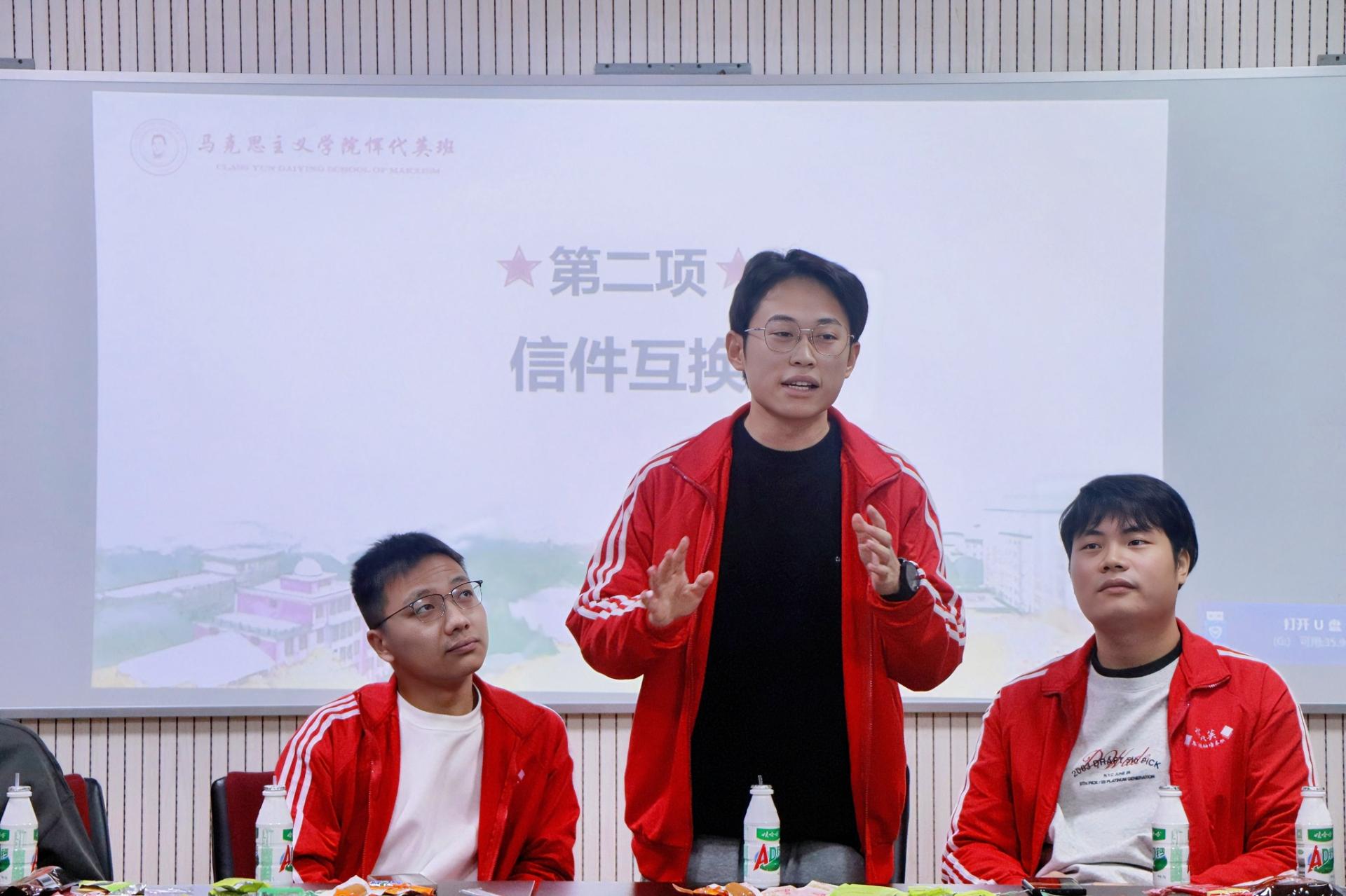 随后,班长邓潇潇为班级新成员发放了老成员用心准备的书信,并鼓励新成员积极进行分享。其中,新成员王梓桐朗读收到的书信,他表示,这份书信诚意满满,让他感受到班级温暖、团结的氛围。